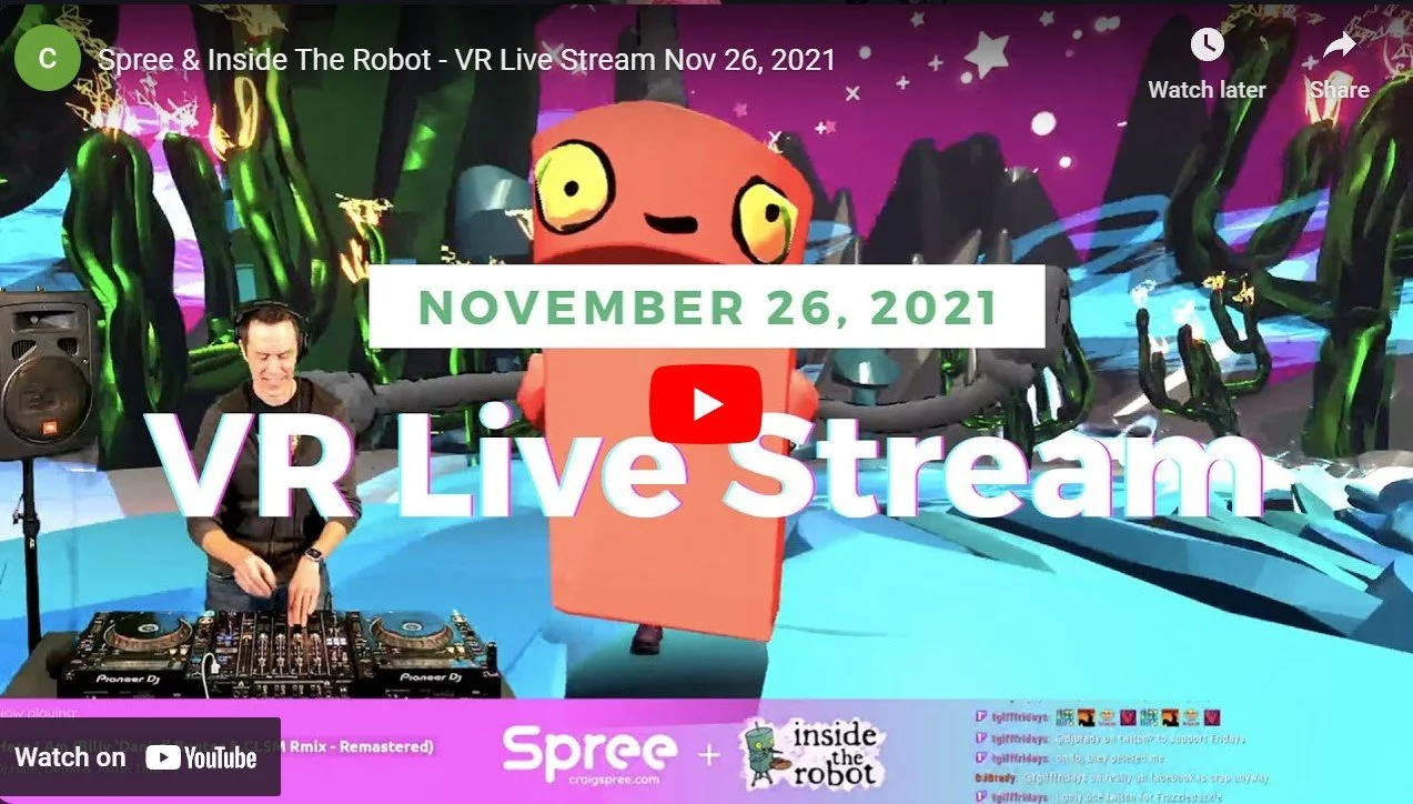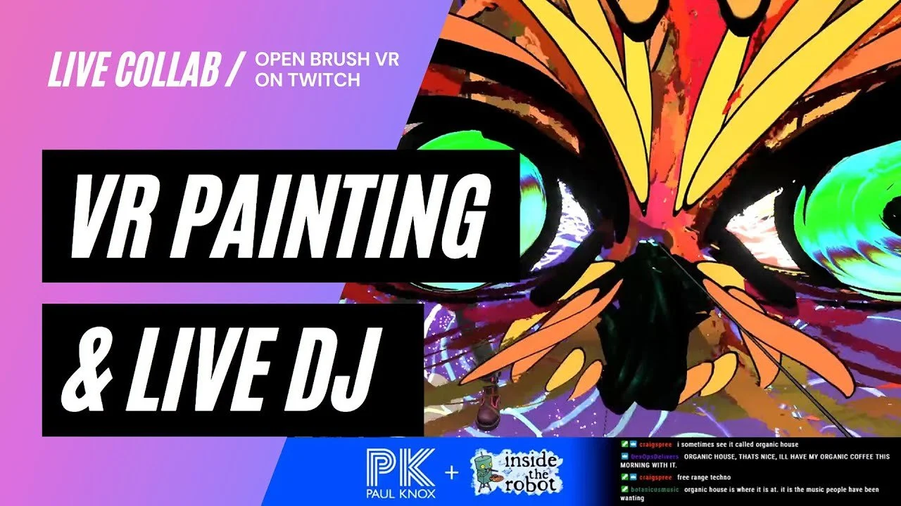The music flowing from DJ Spree's turntables becomes a living mural under InsideTheRobot's virtual brush. With every beat and scratch, the visuals breathe with the music, bending bass notes into light and form in a universe that pulses to the rhythm of deep tracks.